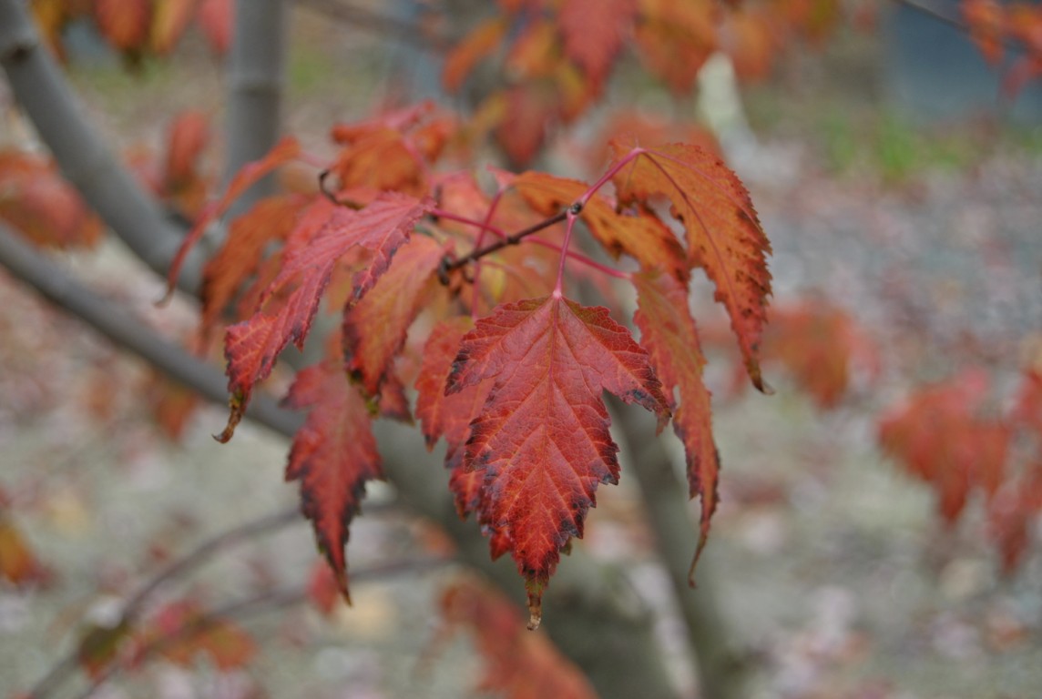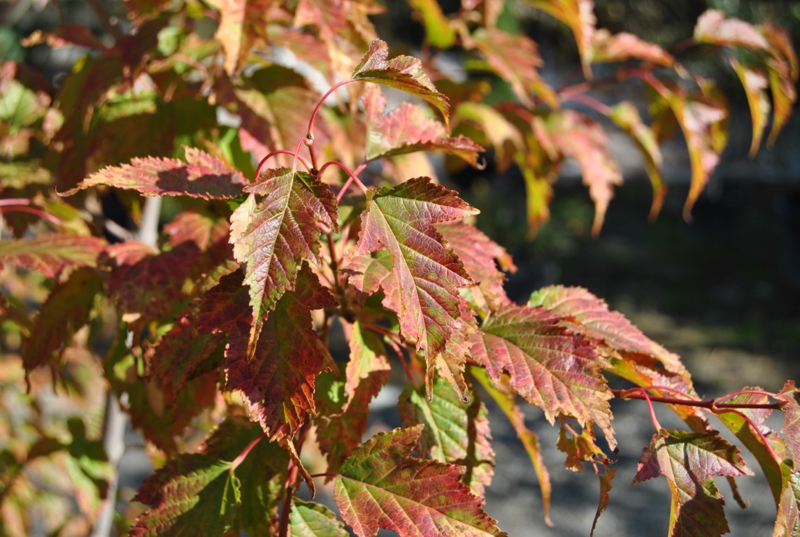 Listy: Trojlaločné, tmavozelené, na jeseň sa sfarbujú do žiarivej červenej až oranžovej