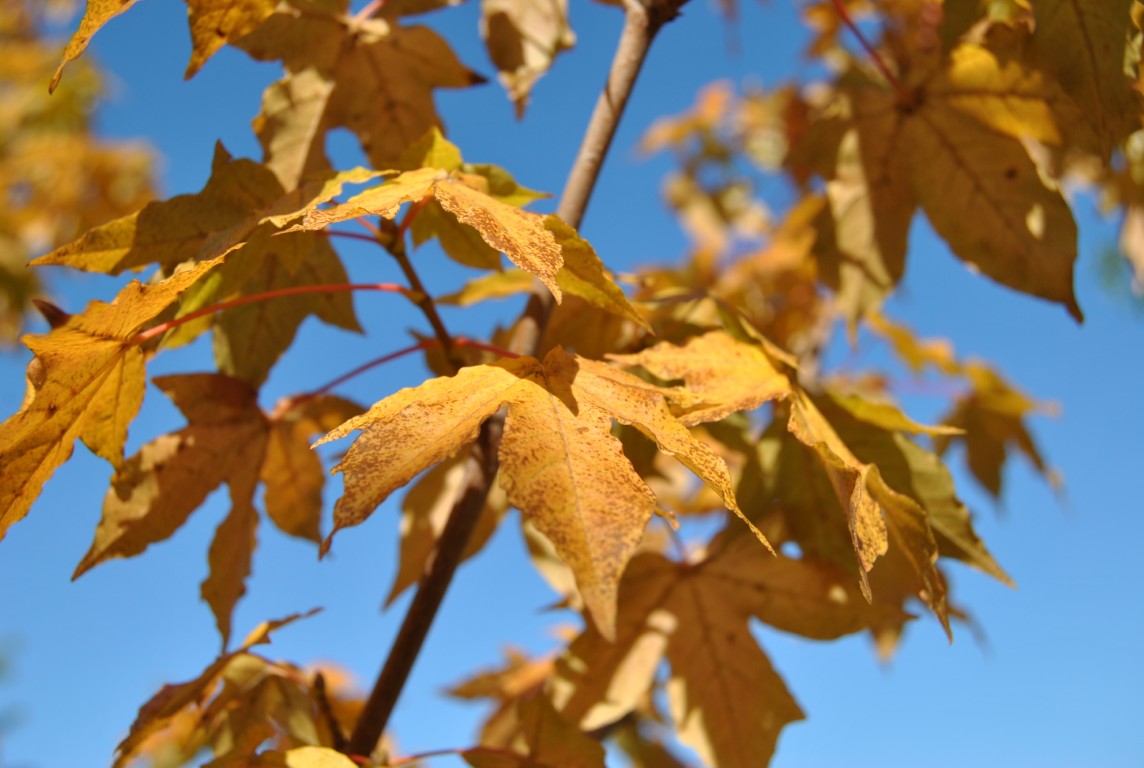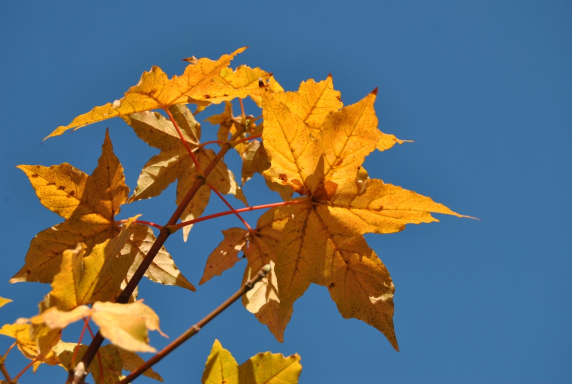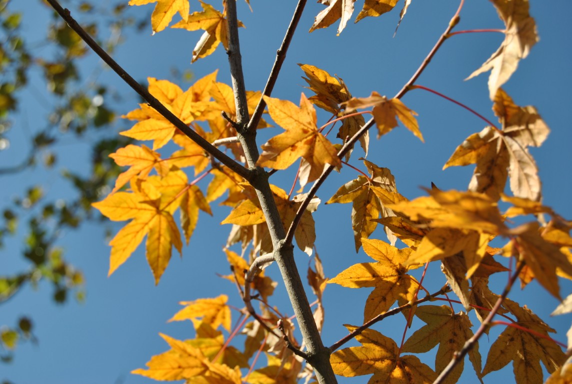 Listy: Veľké, laločnaté, tmavozelené a lesklé; na jeseň žltnú až oranžovejú