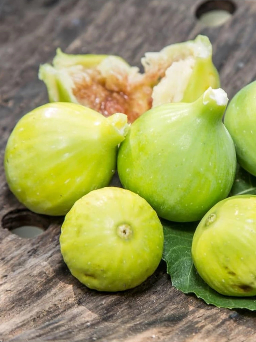 Plody: Veľké, svetlozelené až žltozelené figy; sladké, šťavnaté, jemnej chuti; dozrievajú júl–september (často aj prvá skorá úroda – "breba")