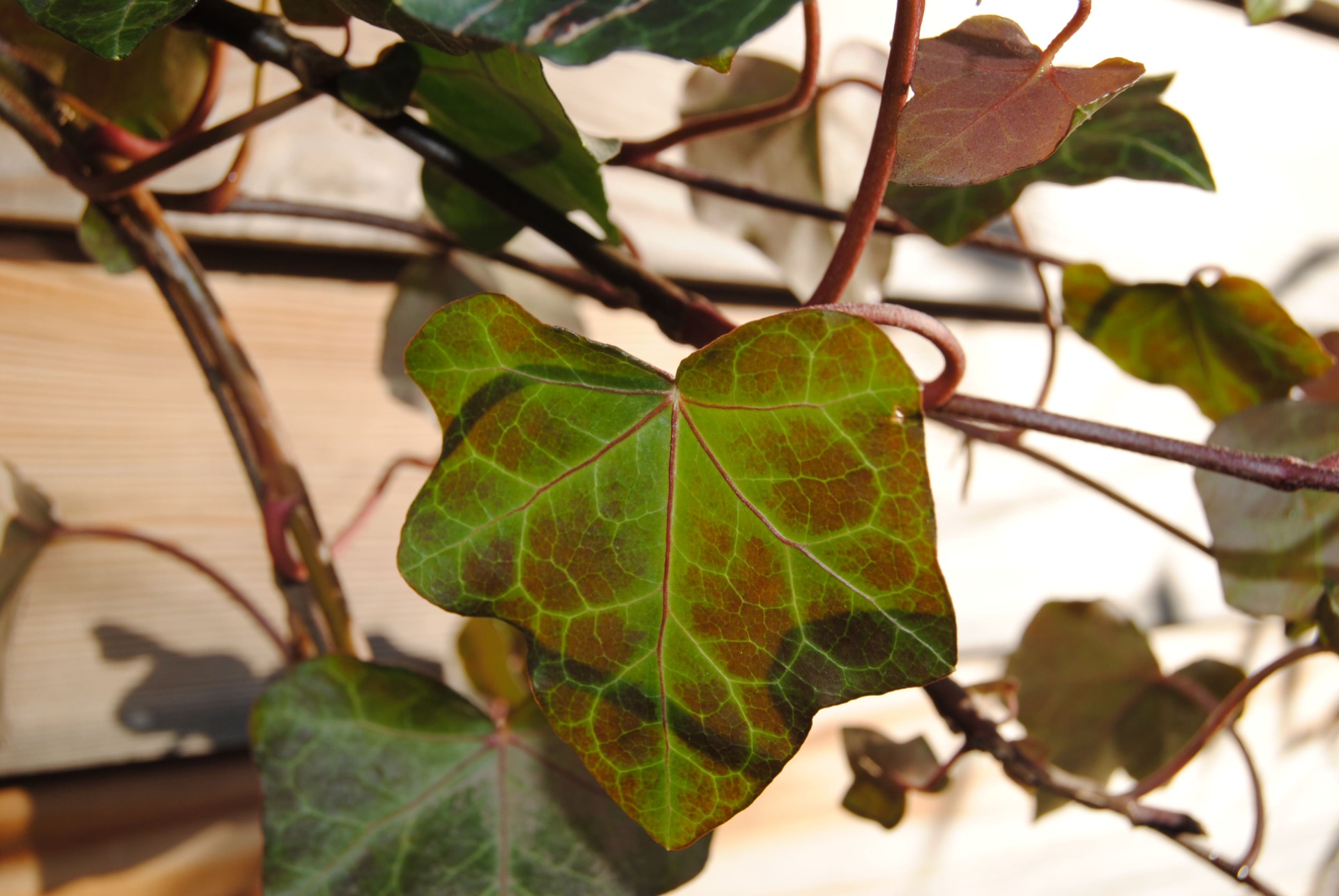 Listy: Veľké, 10–15 cm, tmavozelené, lesklé, vždyzelené; na tieni ešte väčšie než u Hedera helix