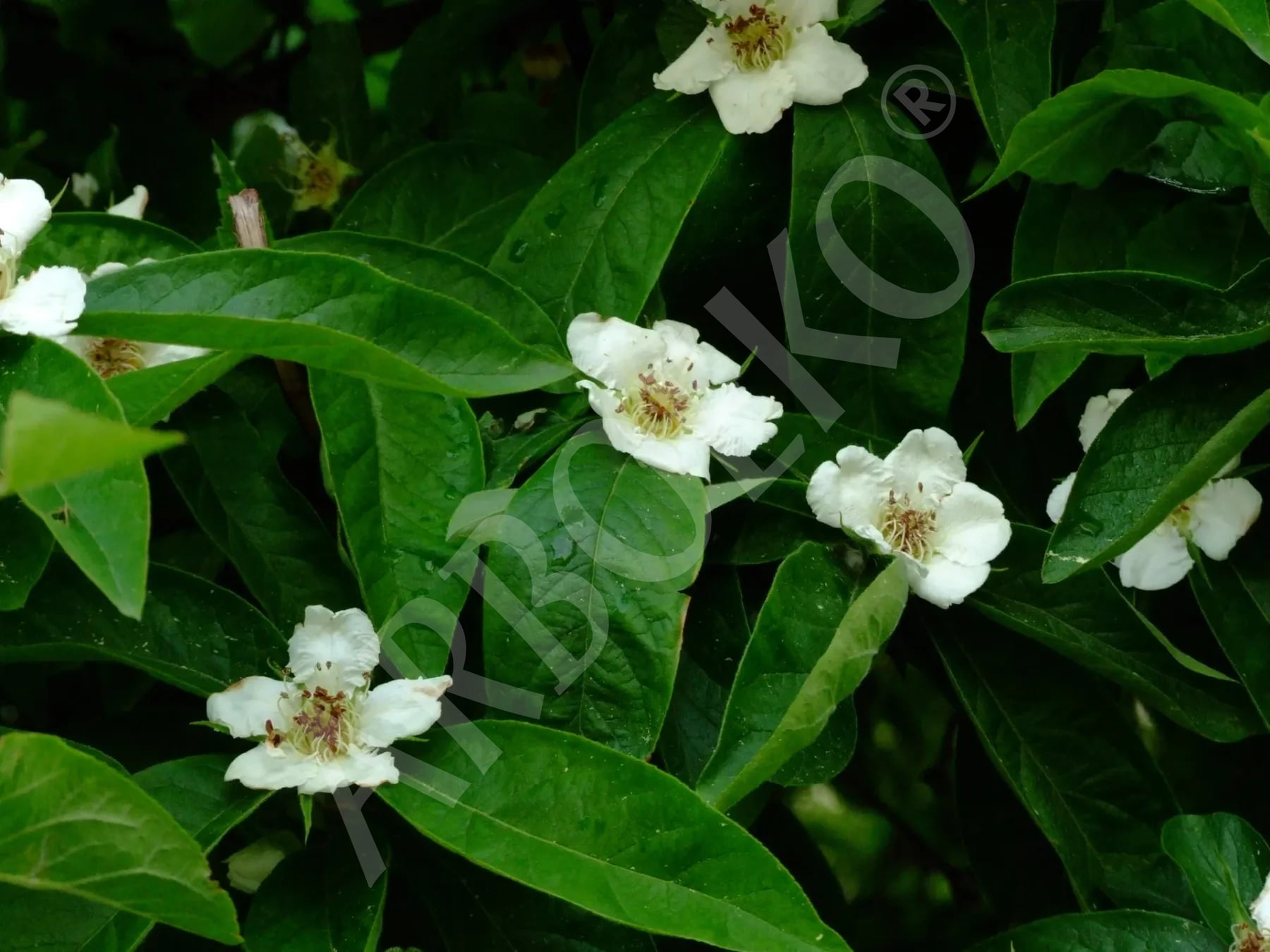 Kvety: Veľké biele kvety (5 cm), kvitne v máji; veľmi dekoratívne a medonosné